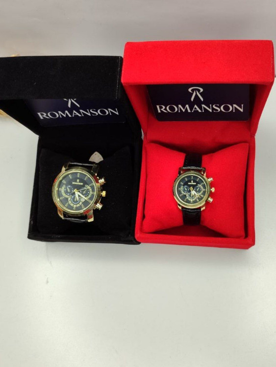 ست ساعت رومانسون بند چرمی دو رنگ زنانه مردانه ارسال رایگان گارانتی جعبه مخمل کپی کپی