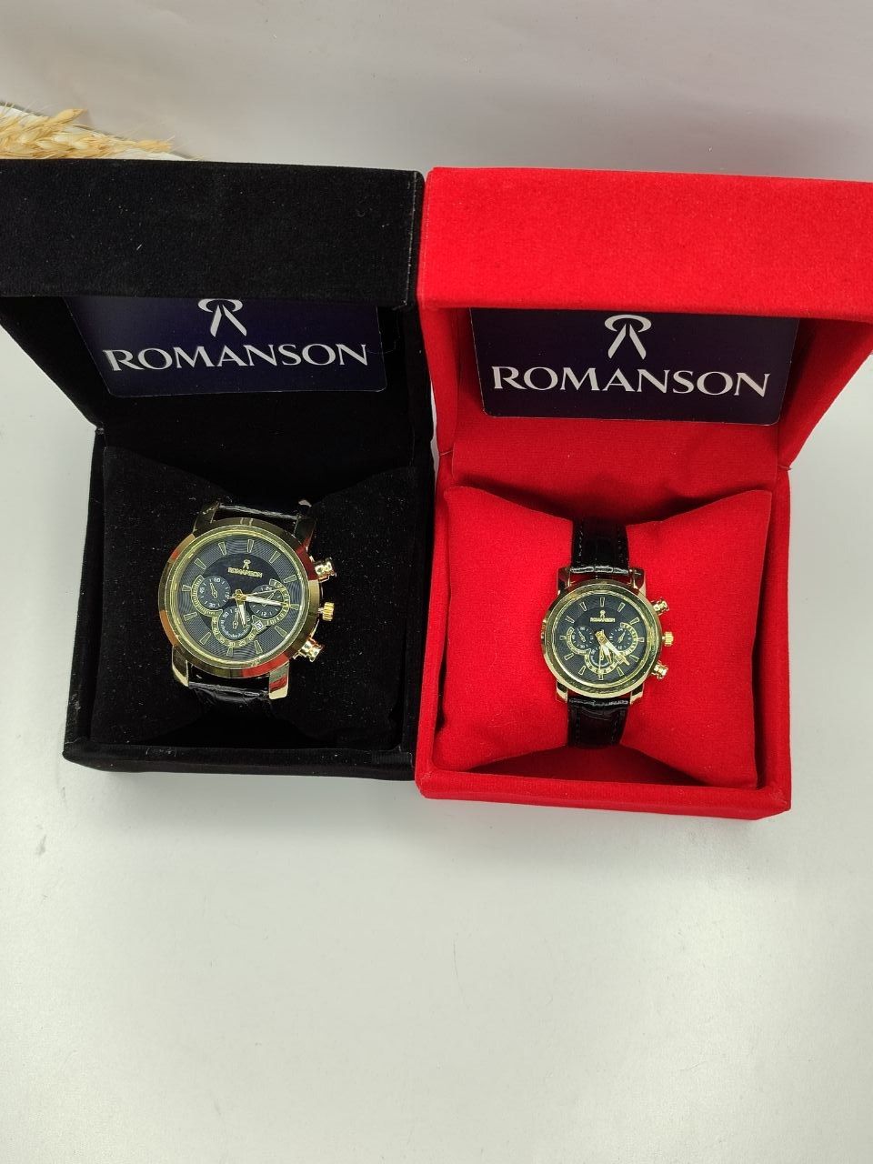 ست ساعت رومانسون بند چرمی دو رنگ زنانه مردانه ارسال رایگان گارانتی جعبه مخمل کپی کپی