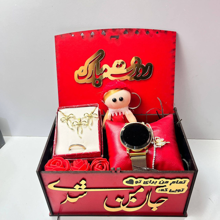 باکس اقتصادی روززن . روزت مبارک هدیه شیک و جذاب زنانه. جعبه چوبی جان من شدی