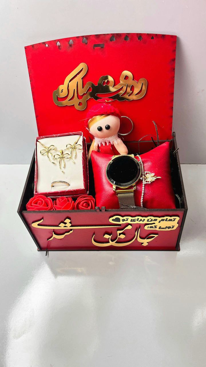 باکس اقتصادی روززن . روزت مبارک هدیه شیک و جذاب زنانه. جعبه چوبی جان من شدی
