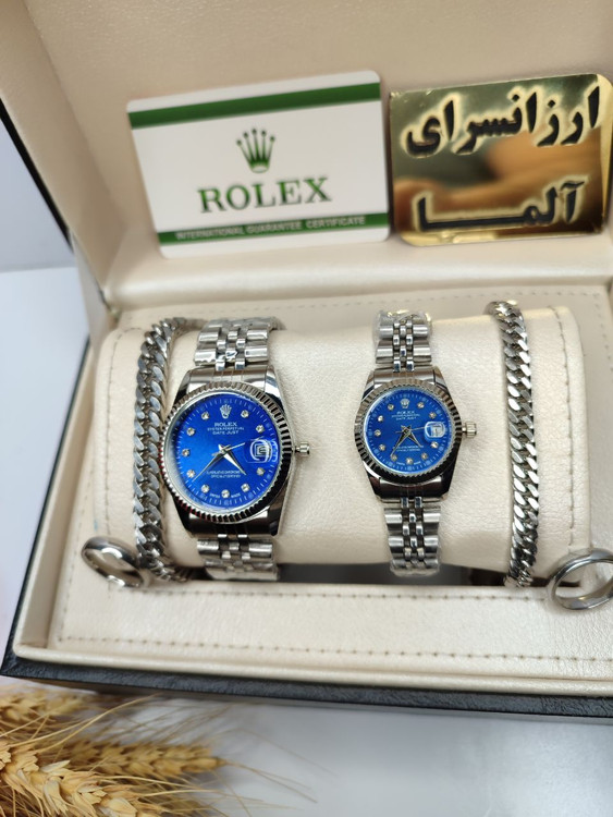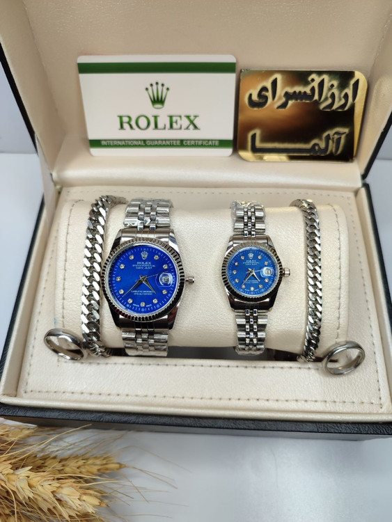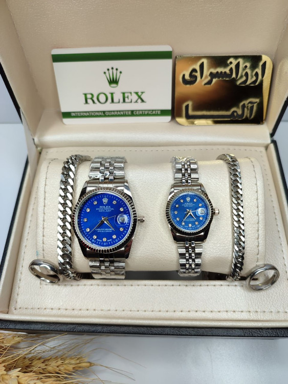 ست ساعت رولکس صفحه ابی دستبند و حلقه گارانتی ارسال رایگان