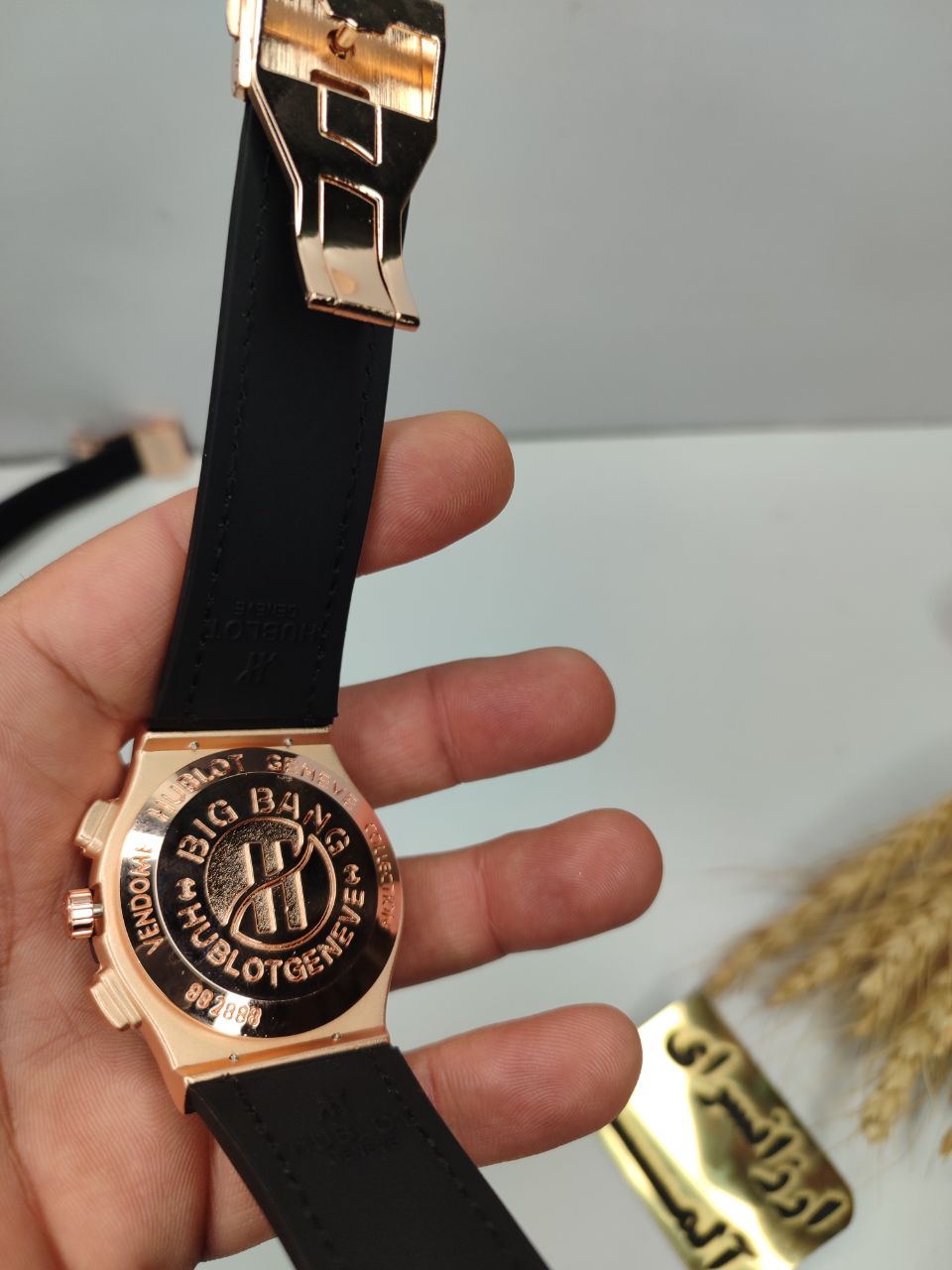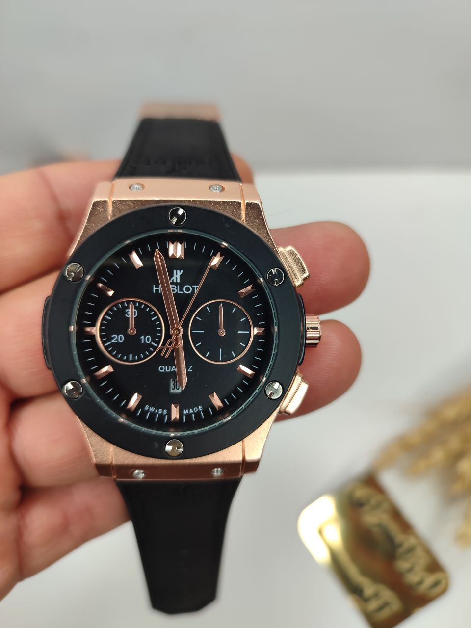 ساعت برند هابلوت ضد آب در حد بند رابر با حک هابلوت